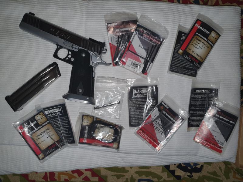 STI EDGE 9mm . Solo usada en una temporada en precisión.Excelentes condiciones de mantenimiento. Maletín original. Dos funnel , el original y uno de aluminio sobredimensionado. Dos cargadores. La entrego con varias piezas de repuesto.