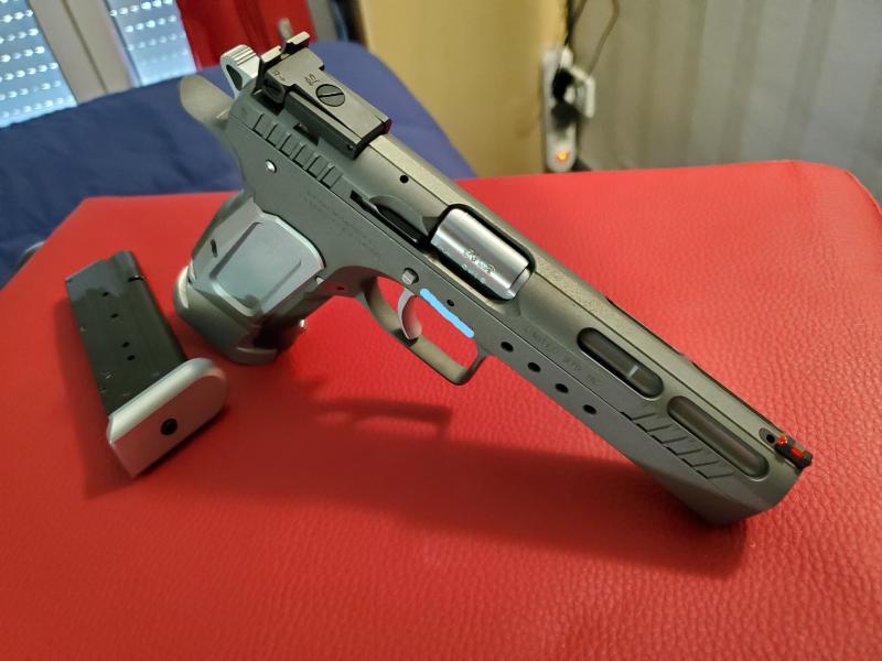 Se vende Tanfoglio Limited prácticamente nueva ha tirado, se incluyen tres cargadores, punto de mira original y varios muelles recuperadores de diferentes cargas, se puede ver y probar sin compromiso.