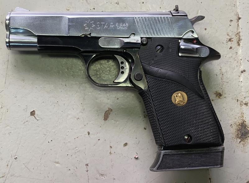 Pongo a la venta una pistola STAR PD en Cal.45 con la corredera cromada en blanco.