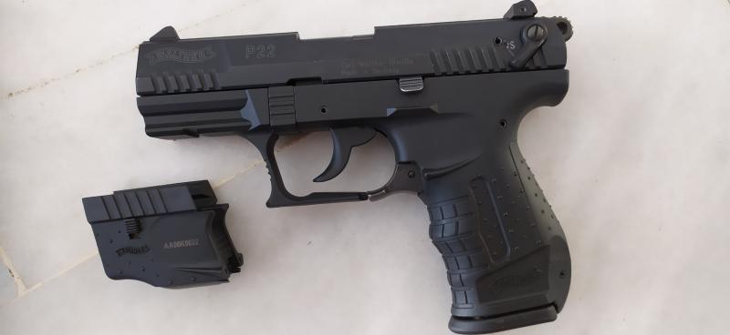 Vendo Walther P22, impecable, con tres cargadores y puntero láser original de la marca. Completa con maletín, llave de seguridad cachas y puntos para intercambiar. 200 euros.