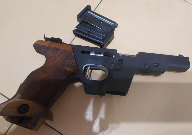 Se trata de la famosa pistola de fabricación Alemana WALTHER modelo OPS-22 short, una de la más utilizada en el tiro olímpico, se encuentra en perfecto estado.