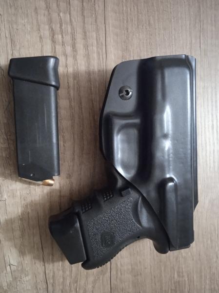Hola, soy Paco, de Alicante. Vendo Glock 26 guiada en A, dos cargadores con +2 y alza cambiada regulable en altura y deriva, regalo funda interior de kidex. Precio 350€, contesto por Whatsapp (645922967)