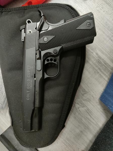 Se vende por necesidad de cupo COLT GOLD CUP cal.22. está como nueva comprada en noviembre del 2021 con 2 cargadores y maletín de plástico original, e arma se encuentra un alicante precio 250€.