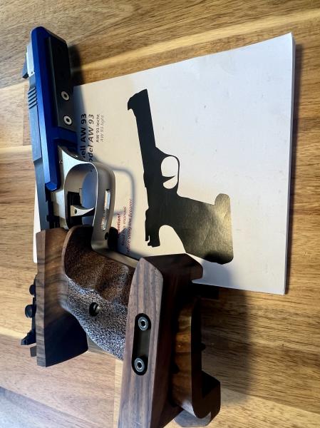 Vendo pistola FEINWEKBAU AW93 LIGHT AZUL comprada en mayo de 2023, la pistola esta nueva ya que solo habrá tirado unos 500 tiros.