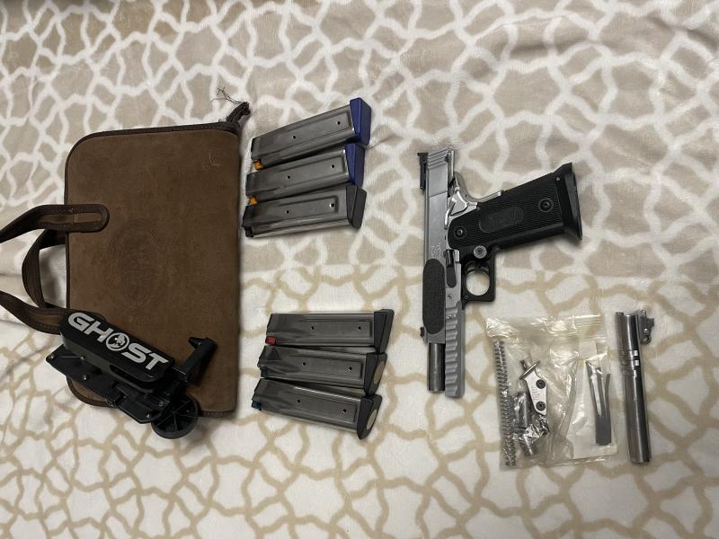 La pistola se encuentra en Córdoba se vende para aligerar el armero funciona perfectamente se vende con funda de extracción rápida 3 cargadores 9 mm 3 cargadores del 40 los dos cañones el 40 casi no se a utilizado, funda sps muelle de recambio y todo lo necesario para instalar 40 muelle y agua se puede ver y probar en campo de tiro de Córdoba, se realizan envíos tlf679810789