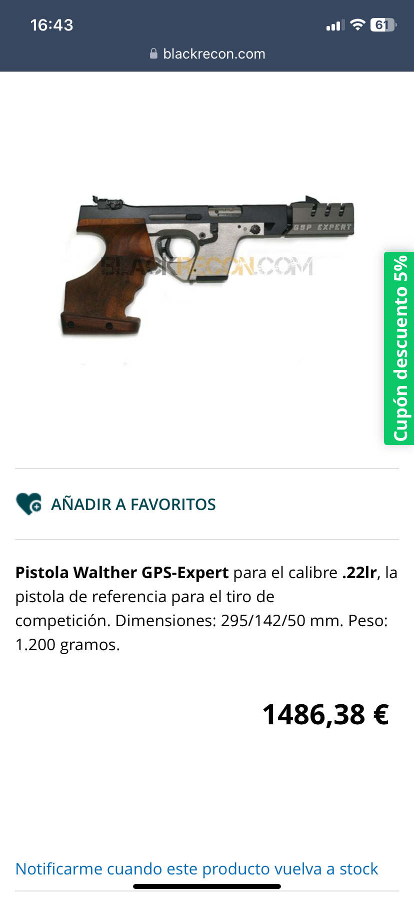 Yeu escribió:VENDO pistola Walter GSP XPERT calibre 22 guiada en "F" 1.080€