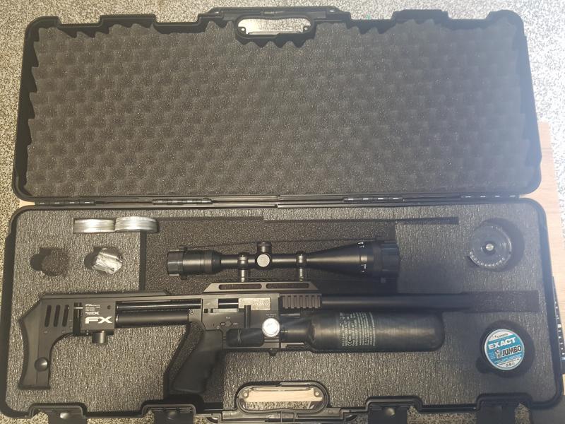 Vendo carabina de aire comprimido FX Impact .22 cal. 22 sin apenas uso y comprada hace 4 meses, por lo que esta en perfectas condiciones. Se vende por no tener apenas tiempo para usarla. el precio seria de 1600 euros con porte a peninsula incluidos y el visor Gamo 4-16x50 AO que monta se podria negociar a parte. Personas interesadas mandar numero y se les enviaran las fotos por whatsapp.