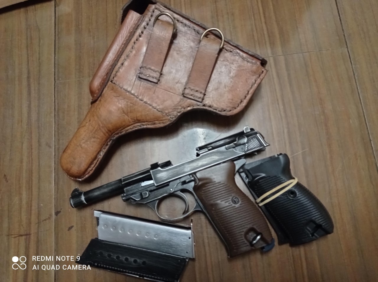 Se vende replica de la pistola Walther P38 de la marca WE de airsoft, no tiene numero de serie, formaba parte de mi colección. Material envejecido, 2 cargadores uno de ellos plateado, 2 juegos de cachas las marrones son originales modificadas para montarla en la replica, funda de cuero y se regala cinturón similar al original de 5 cm de ancho (el original wwii es de 4. 5 cm). No se cambia, solo venta, NO SE INTERCAMBIA, NI SE VENDE POR SEPARADO, la función de la venta es recaudar para terminar otros proyectos, abstenerse propuesta fuera de la venta descrita. 150+10€ de envío por mensajería