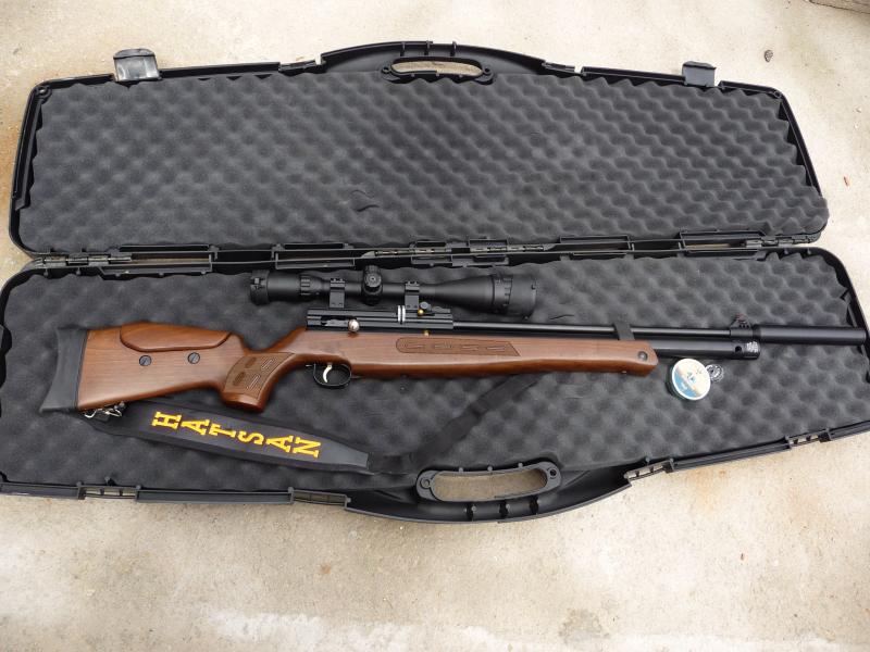 Carabina pcp Hatsan BT65 en perfecto estado (550€), como nueva, con moderador (50€), estabilizador de presión (70€), visor Leapers 6-24x50 AO (125€) y alzas 25h4 (15€). Suma un total de 810€.