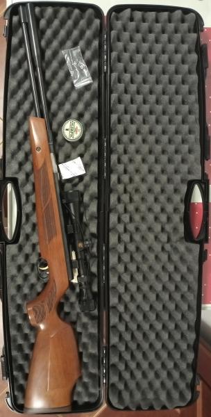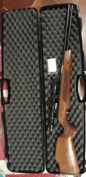 Vendo carabina A/C calibre 4,5, marca Weihrauch HW97R, tarjeta de armas "permanente", muy precisa. Incluyo maleta de transporte y visor Gamo 4x20 nuevo, está casi nueva, solo tiene dos rasguños, precio 500€..