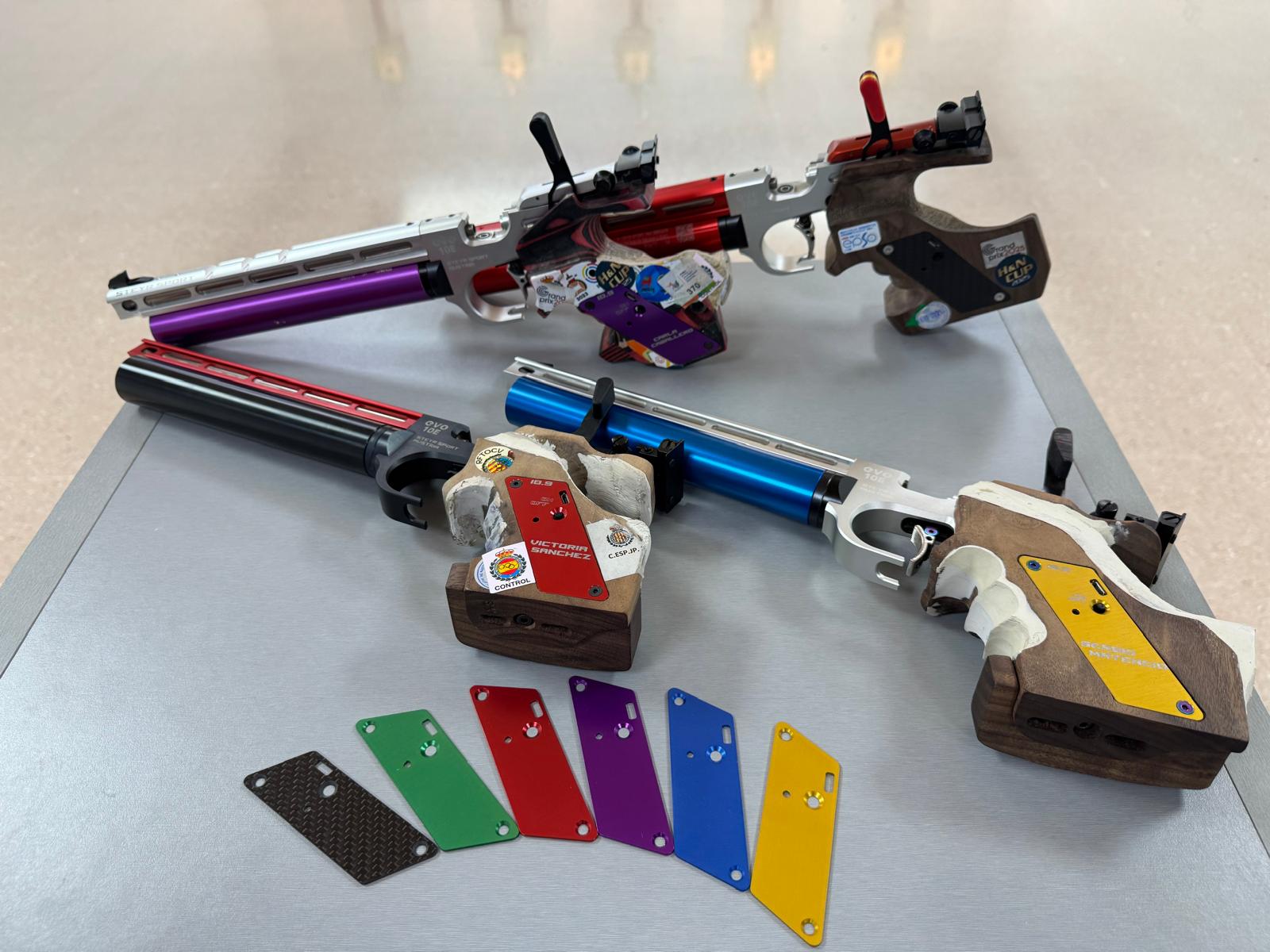 Placas de diseñadas para Steyr Evo 10E, encajan perfectamente en su sistema electrónico, fabricadas en aluminio anodizado (verde, morado, rojo, azul, dorado) o fibra de carbono real. Corte CNC de precisión, acabado de alta calidad.