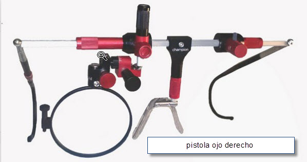 No son exactamente iguales, entre el modelo para rifle /ojo diestro (el tuyo), y la gafa para arma corta/ojo diestro hay diferencias, como puedes ver en las fotos, para favorecer la colocación de la lente en relación a la postura de tiro, diferente para cada tipo de arma.