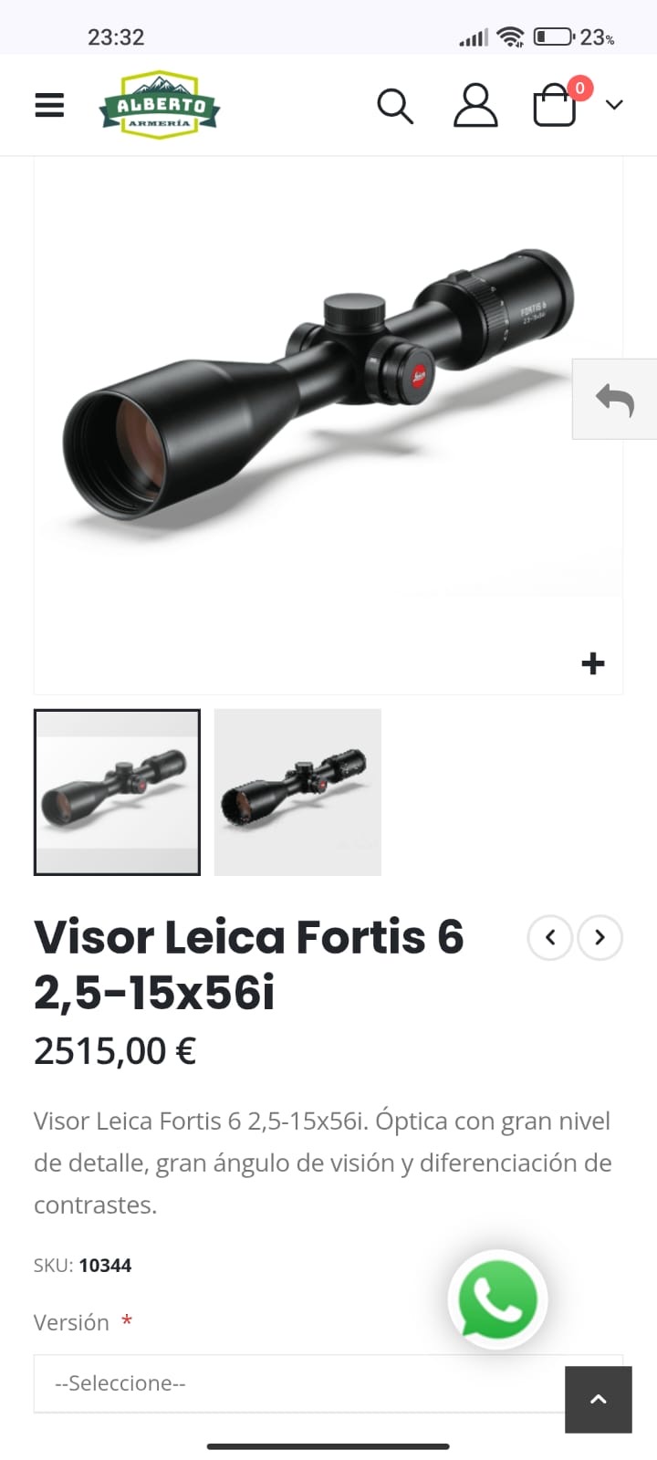 Visor Leica fortis de 2,515x56, tubo de 30 y retícula 4a iluminada, visor polivalente, válido para monterías por su gran captación de imagen y campo de visión, así como esperas y Recechos por su gran transmisión lumínica , paralaje y finísimo punto iluminado.