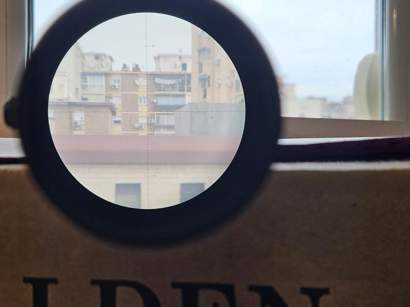 Foto de la reticula realizada en dia nublado, sin zoom y edificio a 420m.