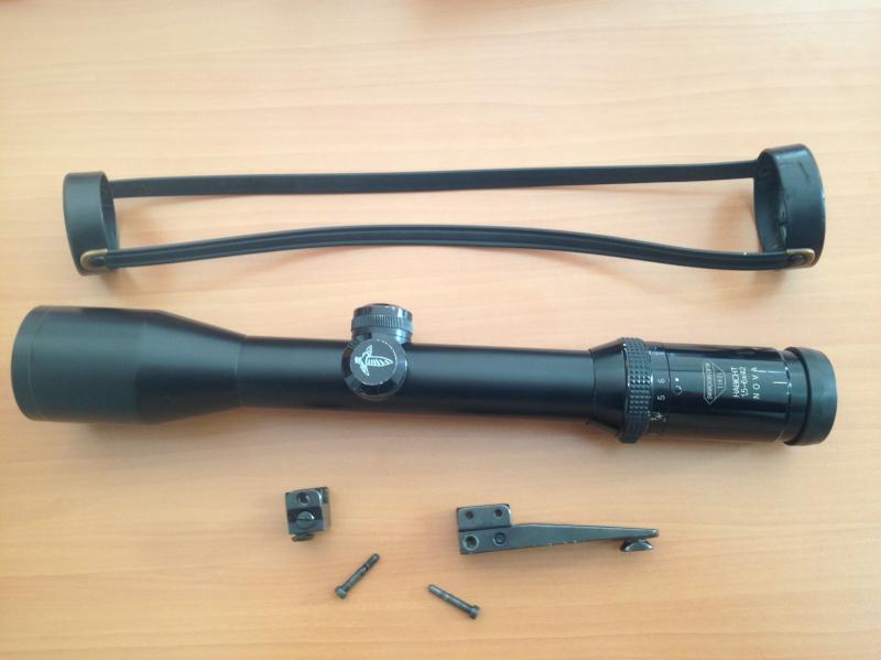 Se vende visor de carril swarovski habicht 1, 5-6x42, especial para batidas y monterías, en perfecto estado, sin ningún tipo de arañazo en las lentes, se incluye en el lote las monturas desmontables completas appel originales y las tapas de visor. Recién recibido de la fábrica de swarovski en Austria, donde lo mandé a revisar y le han cambiado el tubo, por lo que el carril está sin taladrar, de manera que se puede adaptar a cualquier rifle, o sea, estado como si se estrenara.