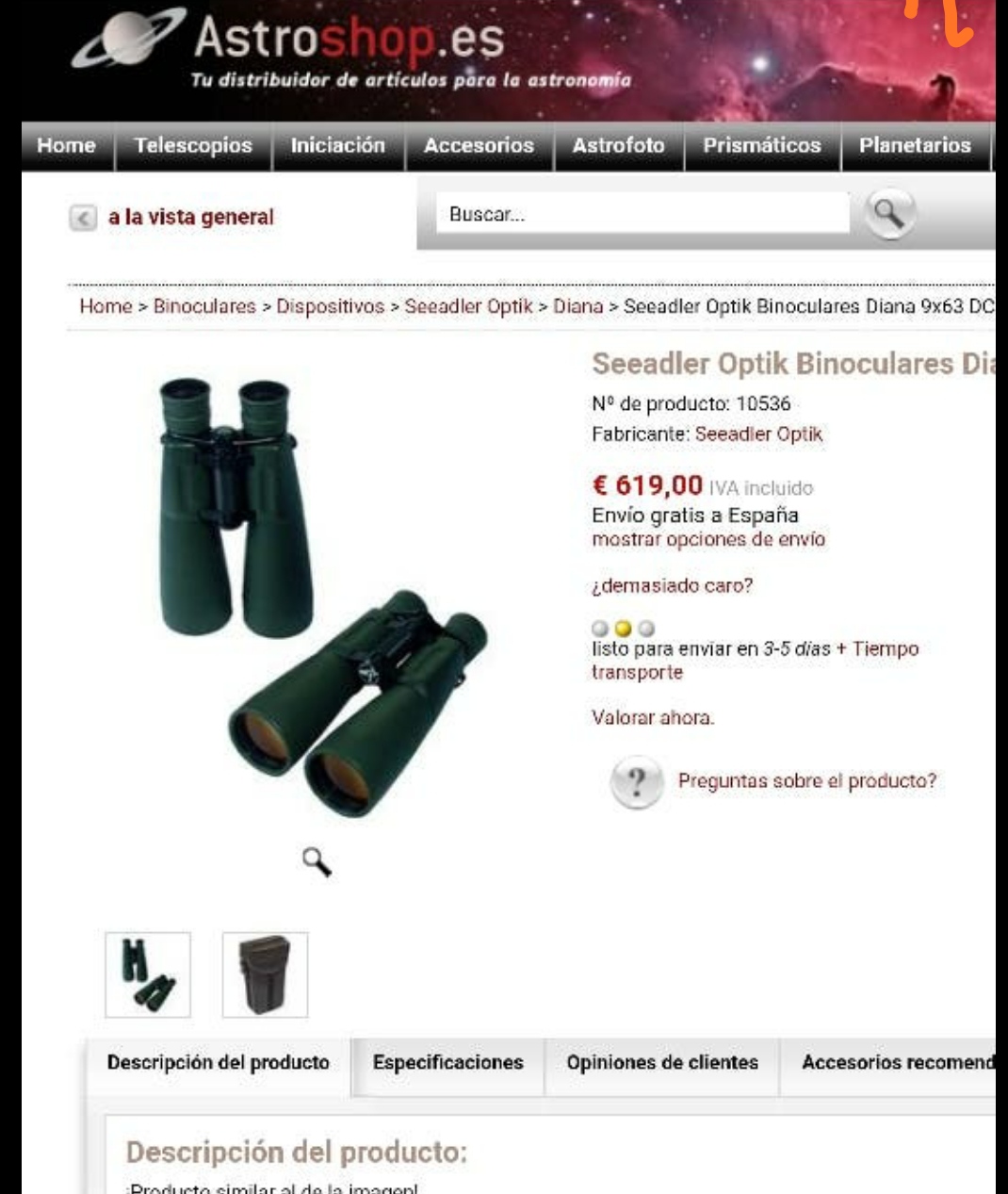 Binoculares SEEADLER OPTIK, de una altísima calidad. Mucha nitidez. 9X63. Muy cuidados. preguntar sin compromiso. 676772952. Precio 300€