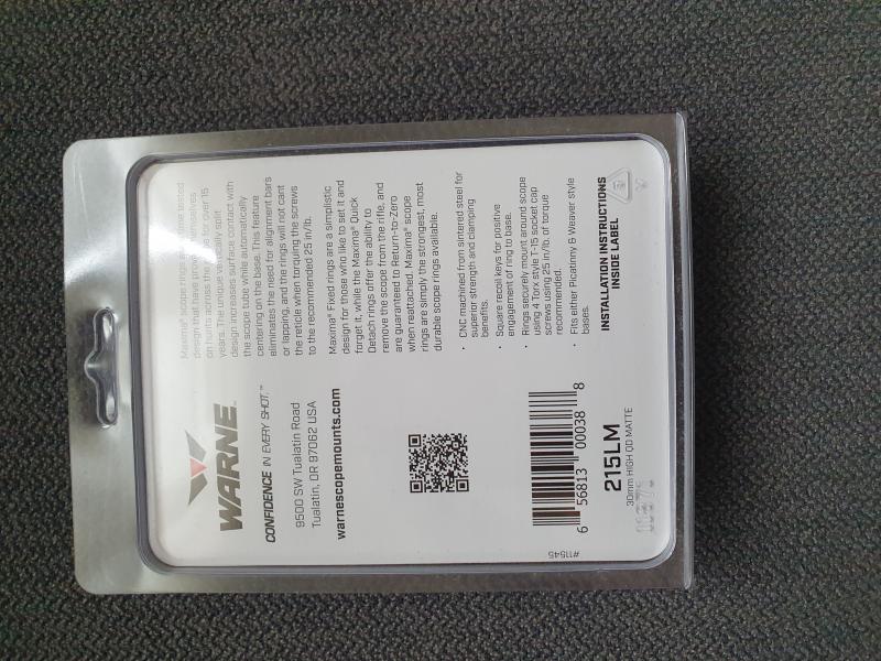Vendo anillas desmontables Warne Máxima 215LM High/Altas, para tubos 30 mm. Para raíles Weaver/Picatinny.