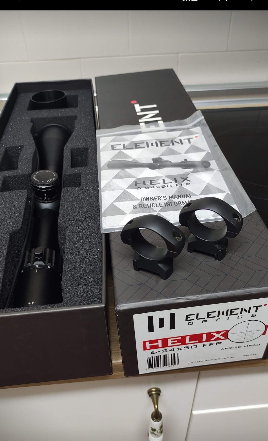 vendo visor ELEMENT OPTICS HELIX 6-24X50 FFP MRAD, 30mm, en perfecto estado. Ideal para PRS 22. Torretas muy precisas y robustas