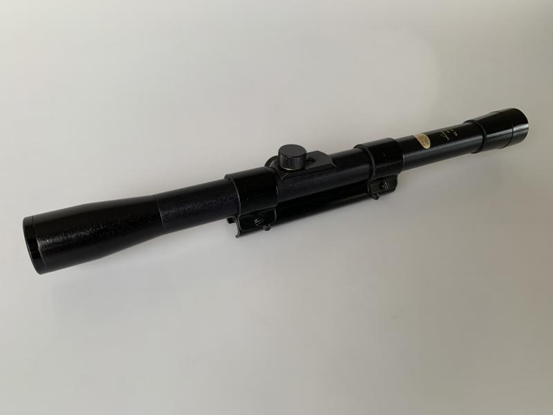 En venta antigua mira telescópica de la marca TL Japan de 6x20 Light destinado al mercado de carabinas de aire o del calibre .22 long rifle. Para carril 11 milímetros "dove tail" o cola de milano. En buen estado: tanto retícula como lentes claras y nítidas. Hecho en Japón en los años 1960 *VENDIDO*