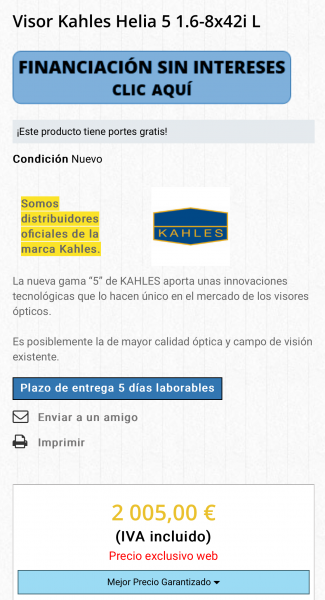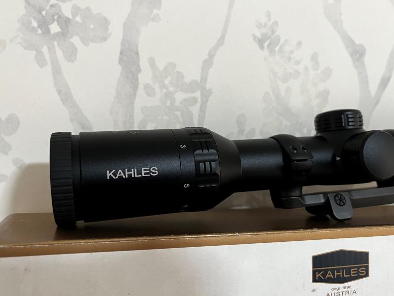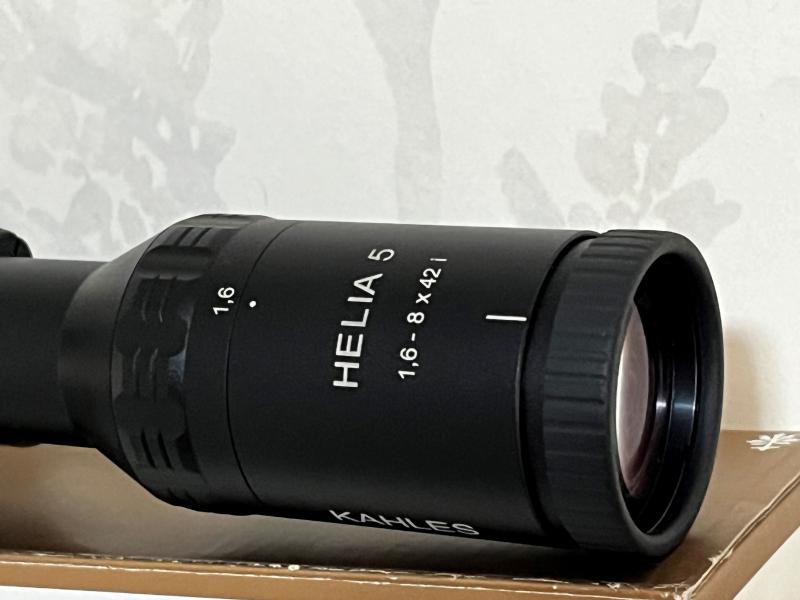 Visor Kahles Helia 5,tope de gama de la serie Helia,de 1,6-8x42,reticula iluminada con sensor de movimiento,se apaga al inclinar,en segundo plano y visible a pleno sol,es un visor muy polivalente con gran campo de vision y punto rojo potente ideal para monterias y los 8 aumentos y las lentes de las masd claras y nitidas ,para recechos a media distancia o esperas.