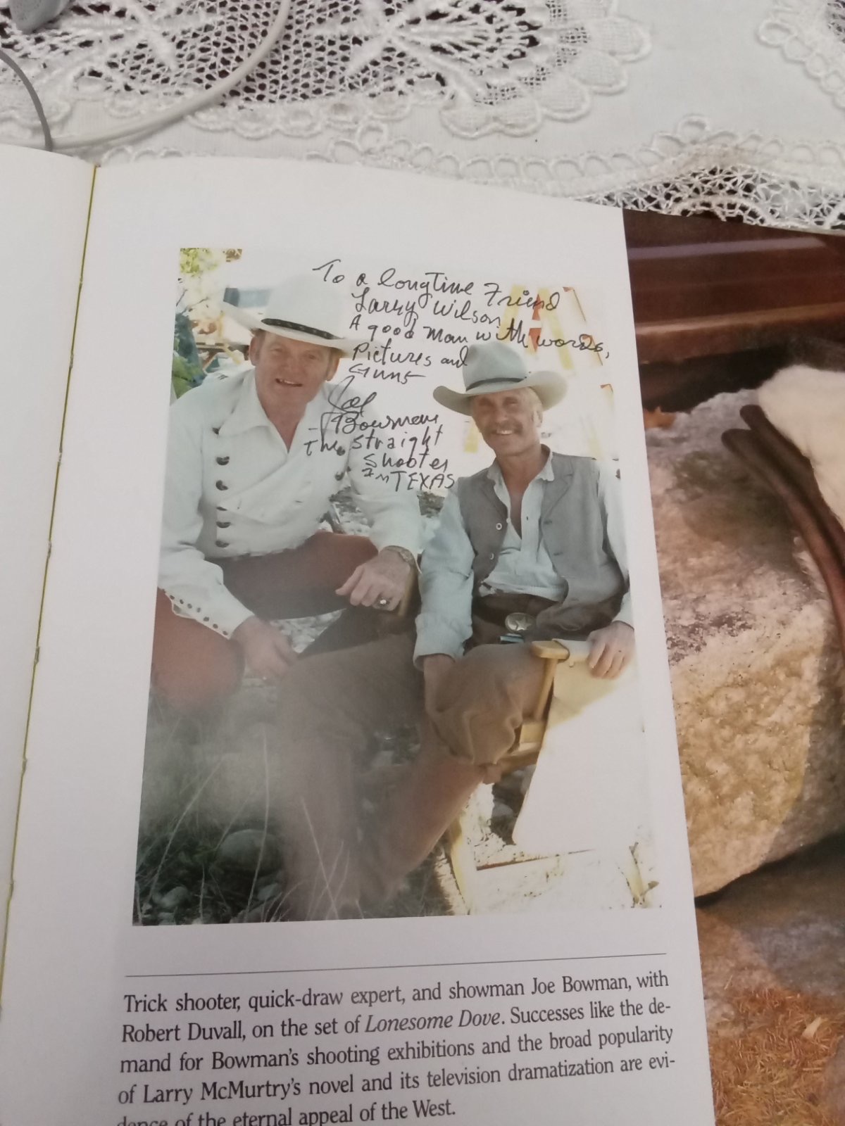 A Joe Bowman le tengo mas respeto, pues directamente se define como “exhibition shooter”, y le he visto videos advirtiendo que no se debe repetir lo que hace con municion real. ( foto, biblioteca propia),