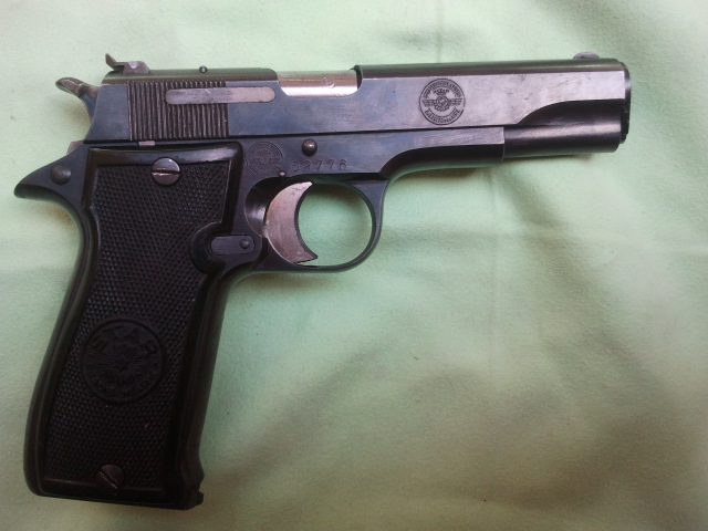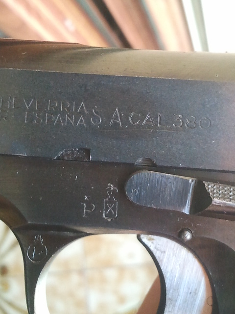 Hola. Un saludo a todos, ya que esta es la primera vez que escribo en el foro (al menos para algo no relacionado con compra-venta). El caso es que acabo de comprar esta pistola y tengo un par de dudas, a ver si los expertos de por aquí me pueden ayudar. Lo primero es que no sé si se trata de una star S o "super S" (o son la misma cosa???). El que me la vendió la compró en una subasta y no tenía ni idea. Otra cosa, parece que por la letra que viene en la pistola se puede saber el año de fabricación de una star. Como en esta viene una P sería de 1945, estoy en lo cierto? Y ya por último, encima del gatillo, junto a la letra P viene un escudo con una x dentro y, no estoy seguro, lo que parece ser un pájaro por encima, qué significa eso? En fin, que muy agradecido a quien me aclare esas dudas o cualquier otro detalle relacionado con el arma.