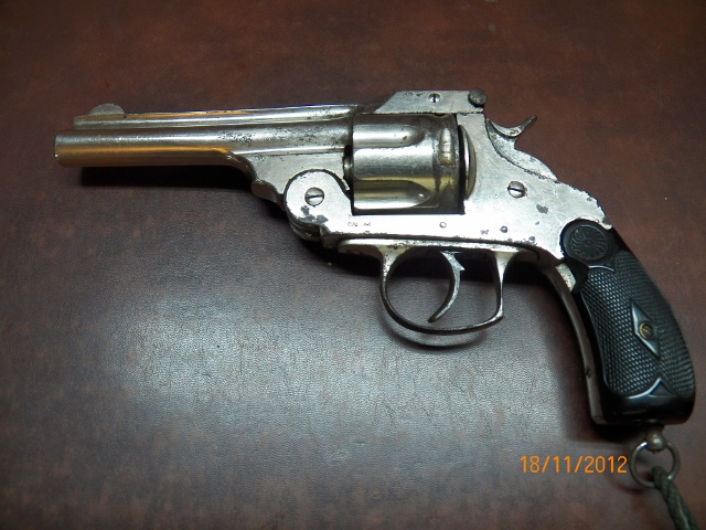 Lo siento pero de S&W tiene muy poco, es un revólver eibarrés de principios del siglo pasado, sin fabricante conocido por el logo de las cachas se parece al del centro de la parte inferior de esta página
