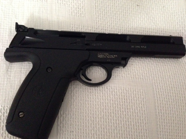 Pues aqui les dejo mi nueva adquisicion una S&W 22A recien comprada al compañero Cowboy_23 tiene muy buena pinta y esta bien cuidada, mañana vere que tal se comporta en el campo de tiro. Tiene unas cachas con agarre de goma que da una buena sensacion.