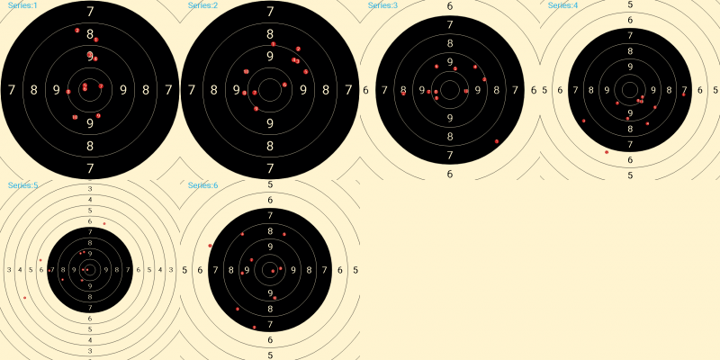 La verdad es que viendo las dianas no te va a costar mucho subir encima de los 500 con cuidar un poco esos 6 y 7 que aparecen de a 3 ó 4 en las series de 150" y 20" ya tenés un salto importante. y si mejorás eso seguro vas a levantar un poco mas en 10" a insistir y trabajar para crecer.