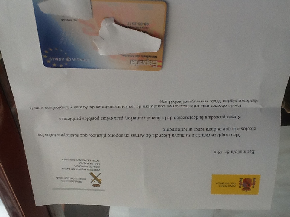 Lo que sí hicieron en mi IA. Es recogerme ya los papeles del armero y meterlos en mi expediente.