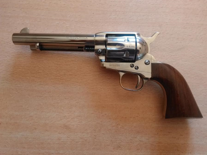 Hola Carlos es la reproducción moderna de un colt de 1873 con tratamiento de cromo,,, y por supuesto materiales moderno.-------------------------------------------------------------------
