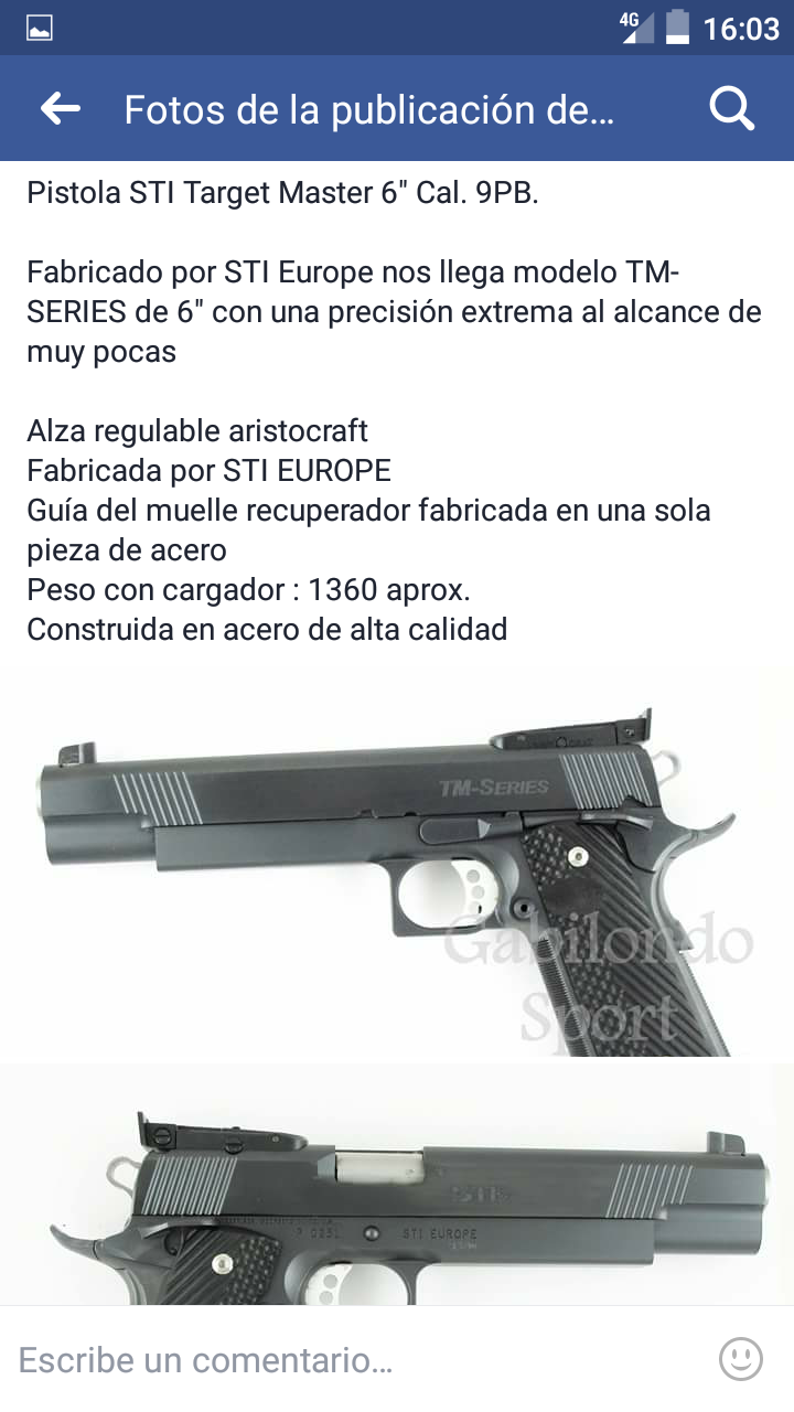 STI Target Master producida integralmente en Alemania (antigua Promesberger) con excelente acabado y mismo peso (1.360 gr).
