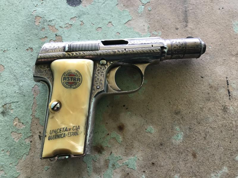 Aunque muy conocida esta Astra 300 y su funda (o lo que queda de ella) pertenece a las que fueron vendidas a la Luftwaffe para sus pilotos que demandaban pistolas pequeñas dada la estrechez de las cabinas de los cazas de esa época. Esta en concreto corresponde a una partida enviada en 1943.