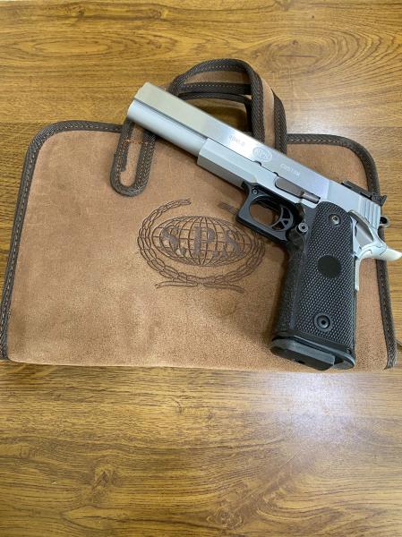SPS World Custom, calibre 9mm, cañón de 6" idóneo para tiro de precisión, con dos cargadores y su estuche de transporte original en piel.