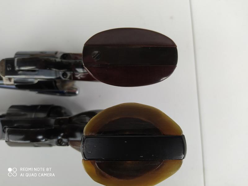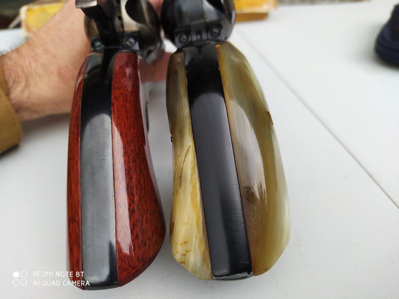 Bronco63 escribió:Las cachas de asta de toro del Ruger, totalmente asimétricas, al lado de las del Cattleman. Me van un poco grandes, pero no son incómodas.