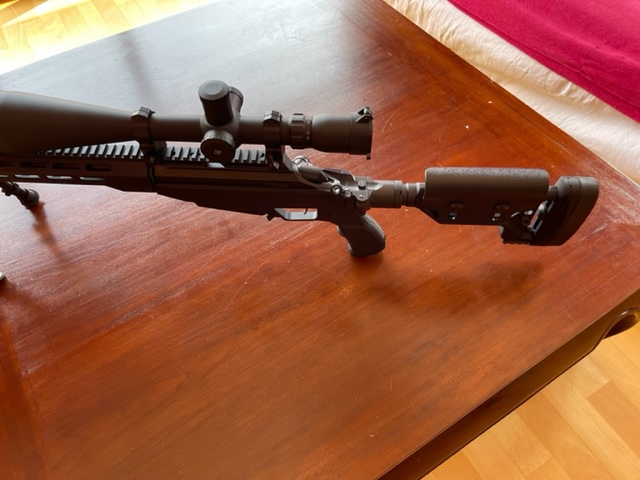 Equipado con mira sightron 10-50x60, monturas 30mm fijas, bipode y adaptador harris.