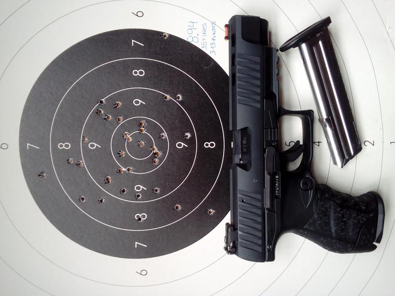 Hola compañero, sigo manteniendo lo mismo que dije en su día sobre la Walther CSP Dynamic, es más, hoy mismo he estado entrenando con ella porque el próximo fin de semana tengo dos tiradas de Standard en dos Clubs de Tiro diferentes, esta ha sido la diana: