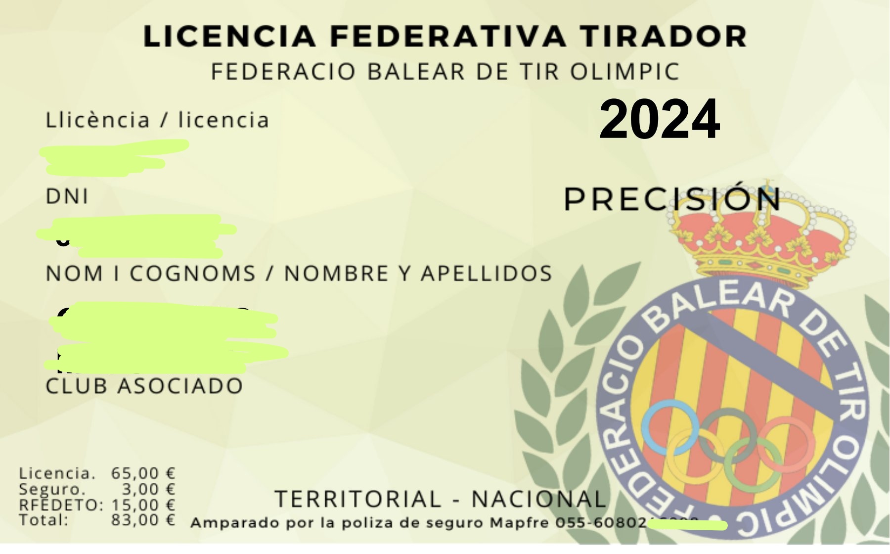 Pues como veis, en mi licencia federativa no pone nada de eso, ni veterano ni junior, ni precisión ni plato ni damas ni caballeros...: