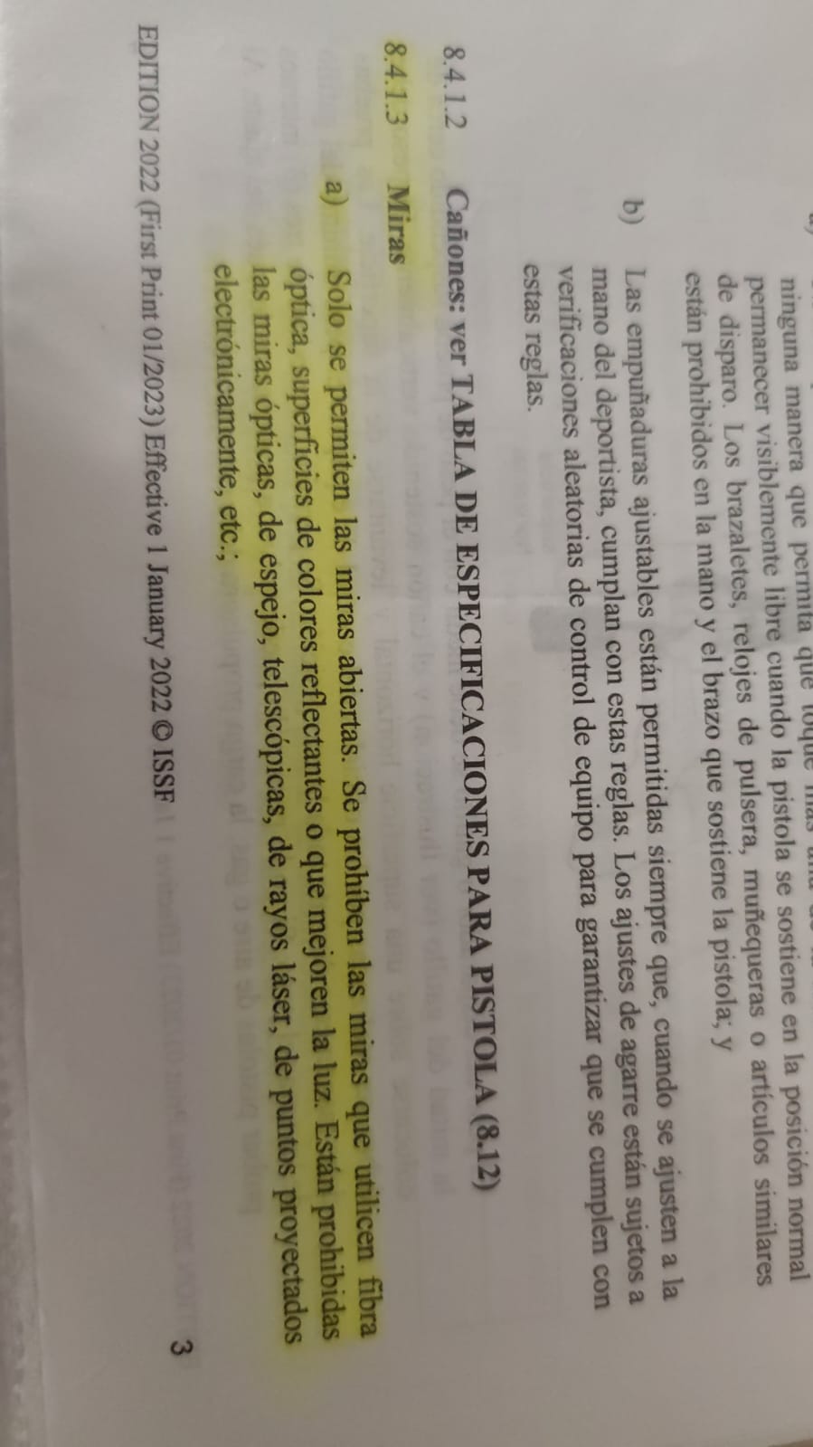 .... Efectivamente no se dice nada de miras de fibra, pero en la normativa general de pistola ISSF....dice: