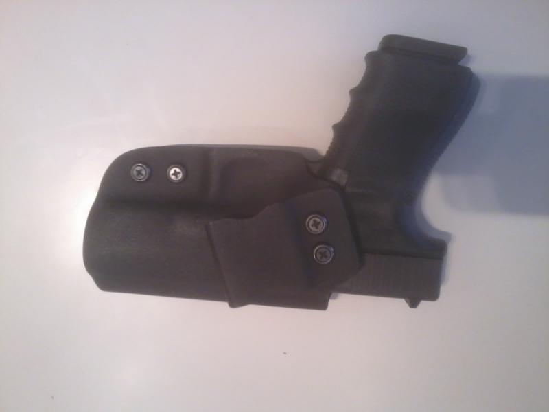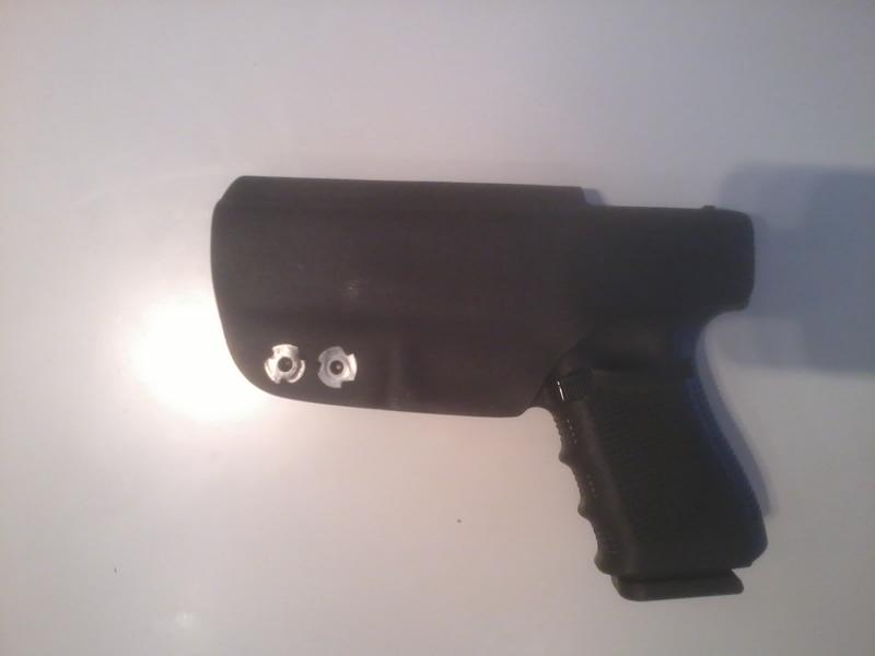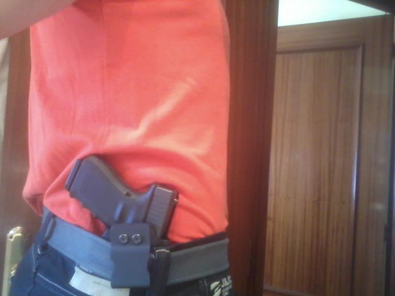 Aquí esta mi Glock 19 gen4. La funda es de la marca Works Holsters, comprada por Ebay e importada de EEUU (precio final me salió por 80 euros). La funda en principio es para su uso en la posición FBI, pero como veis, en posición apendix tambien se lleva bien y queda muy discreta. La munición que uso es la Fiocchi Black Mamba de 100 gr.