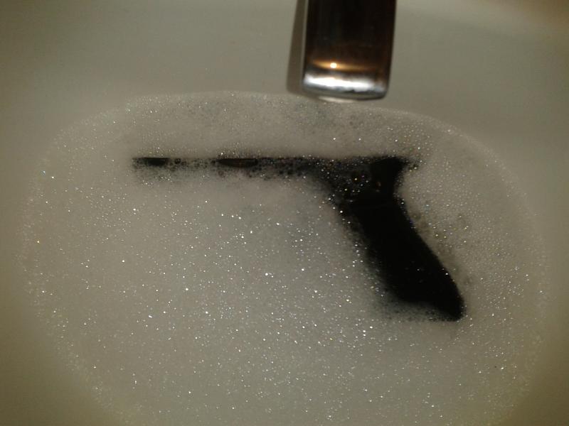 Limpiamos bien la corredera, en mi caso bajo el grifo con agua caliente y jabón. Después, al igual que al armazón, le pasamos la gasa con alcohol y limpiamos cualquier resto.