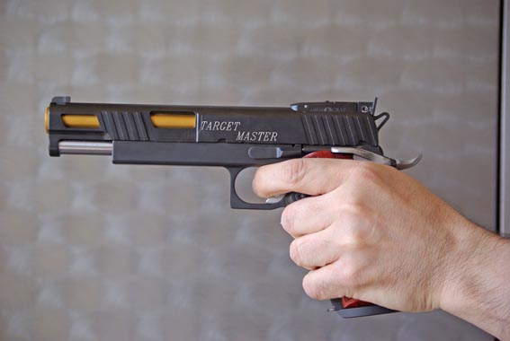 Ventana de expulsión agrandada, atolvamiento de la entrada del brocal del cargador para facilitar recargas, puntos de contraste (tres puntos circulares blancos) en el sistema de puntería montados en cola de milano, indicador de cartucho introducido en la recámara, cachas de madera de nogal "doble diamante", sistema "Series 80": es decir, con mecanismo de seguro automático para la aguja percutora, gatillo con presión de disparador que llega casi a los 3 Kilos.