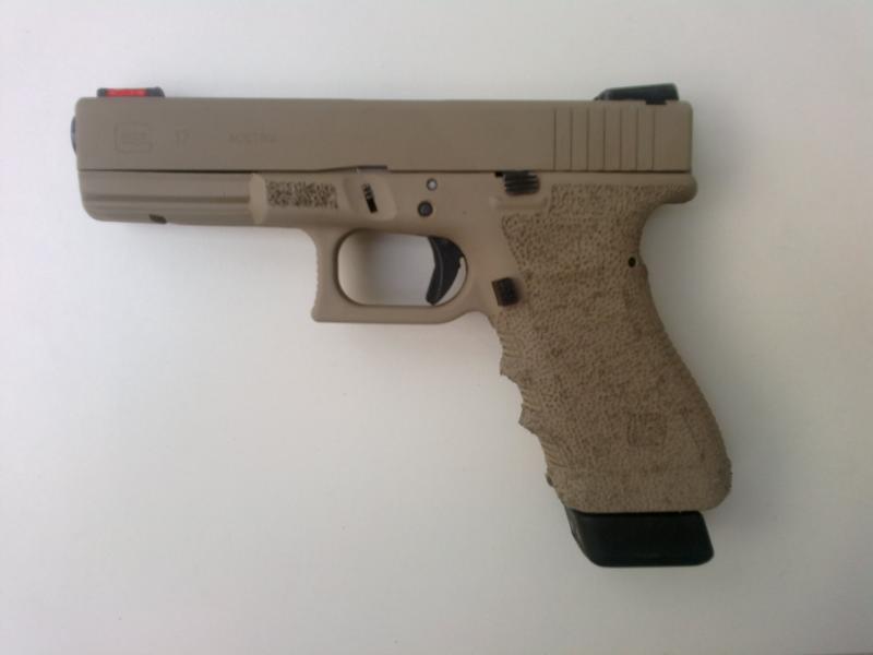 Nueva modificación en mi Glock, ligero rebaje de empuñadura por debajo de la rabera, tapas arredondo +3 y mira HIVIZ recubierta. Ya podré competir en IPSC en menos desigualdad. :mrgreen: