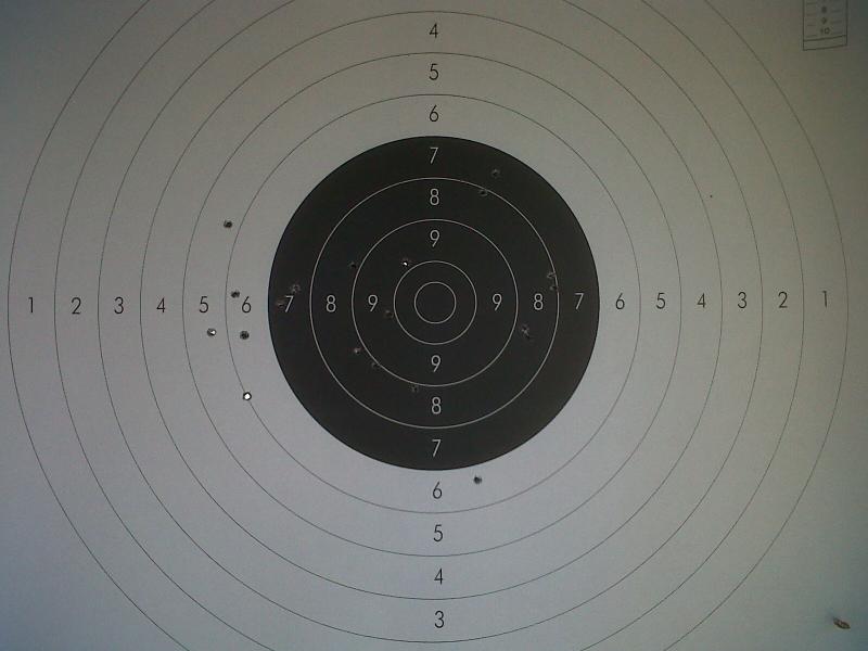 Me fastidió un poco que en los 5 tiros de prueba previos hiciera 2 dieces plenos y 2 nueves, y uno... bueno uno salió por peteneras... Pero los parchearon.