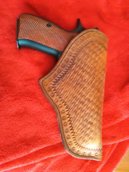 También me he atrevido a hacerle un vestido a mi “chica”, no seáis muy duros en las criticas, es la primero que hago y se notan algunos fallos en la impresión. La parte exterior es de cuero, en el interior he puesto ante, con el fin de evitar la consabida humedad le he dado una buena capa de parafina, tanto al ante como al cuero. Espero que os animéis a postear cositas sobre nuestras CZ. Gracias.