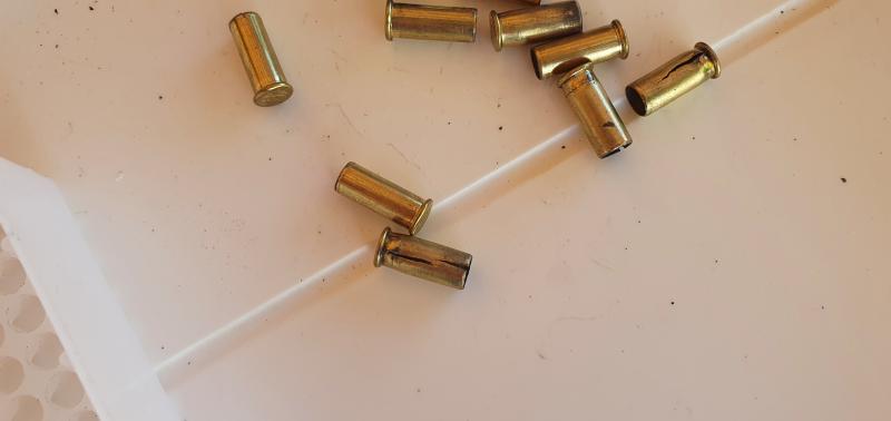 Para sacar las vainas, le tenia que dar con un martillo de nylon que llevo para las armas de avanacarga, y metiendo una bala del 22, veia que en unas recamaras quedaban muy holgueras y en otra entraban justas a su peso.