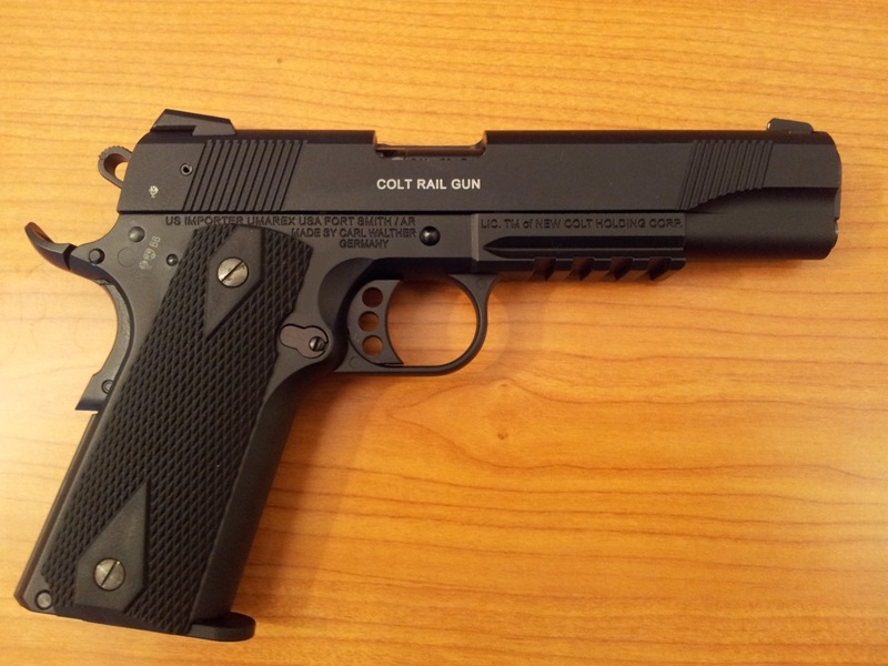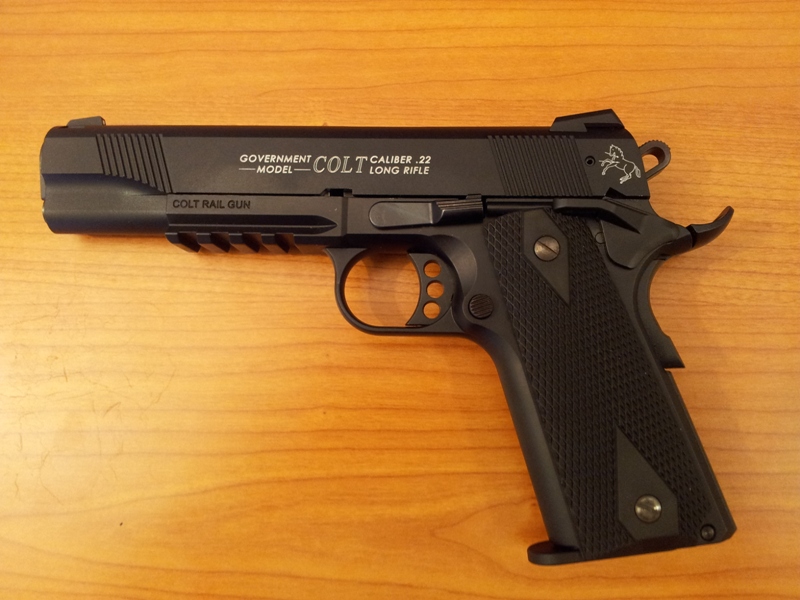 Hola, esta es mi COLT 1911 RAIL GUN .22 La fabrica WALTHER en Alemania bajo licencia COLT. Como podeis ver tiene el martillo y el gatillo aligerados, la aleta del seguro sobredimensionada, la rabera de seguro de empuñadura sobredimensionada, cachas negras de goma, alza tipo combat y un rail tactico para accesorios. Ademas por lo que he podido leer tiene algunas partes intercambiables con las colt originales. Es del calibre .22 y tiene el cañon fijo lo cual creo que hace que sea bastante precisa para lo que es. Esta claro que no es una pistola de precision como las pardini o las walther, pero para el uso que le doy me sirve perfectamente. Siempre he querido tener una colt 1911 pero tanto por su elevado precio como por la dificultad de encontrar municion del 45 donde vivo no me he planteado el comprarme una de momento, aunque todo se andara. Con esta pistola tengo la estetica de la 1911 que tanto me gusta y un calibre que me va a permitir tirar cajas y cajas de municion sin que mi bolsillo se resienta.