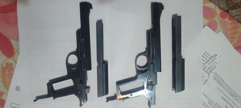Una de ellas lleva un marcaje que desconozco que significa, es la que tiene el gatillo ancho, sin ninguna regulación y con numeración más alta