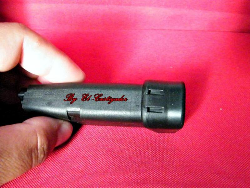 Si nos hemos fijado en los culos de los cargadores el normal tiene en la placa de retención de la tapa del cargador un tetón de retención para que no se pueda soltar la tapa del cargador esto a la hora de desmontar el cargador no interfiere en el desmontaje ya que se pueden desmontar igual.