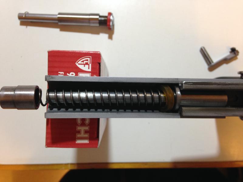 Por un lado, el tapón es, en uno de los extremos el alojamiento del muelle y por el otro el tope de la corredera. Si corto el extermo del alojamiento del muelle, este queda libre. Y si corto el extemo del tope de la corredera, no empujará la corredera hacia adelante